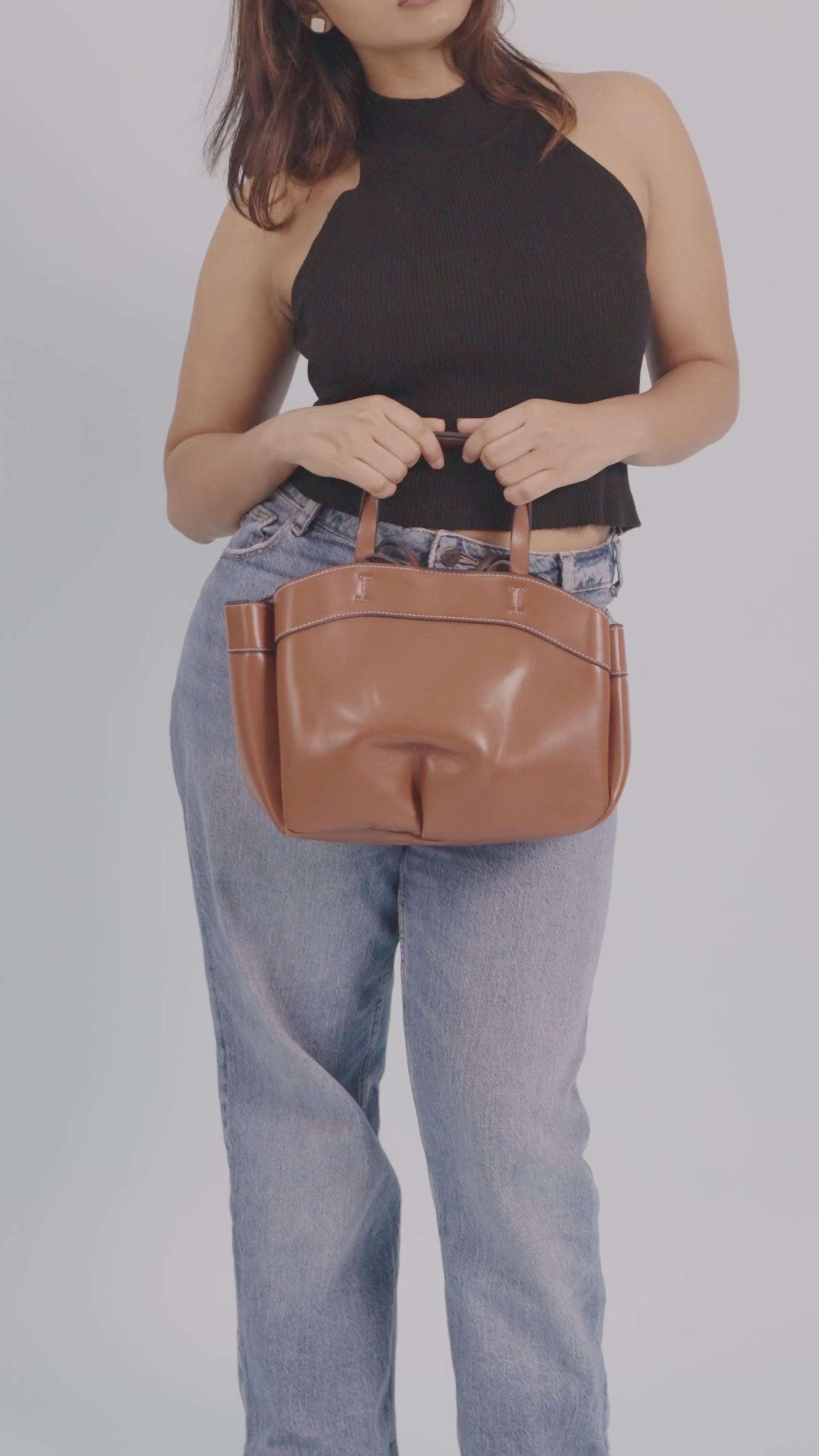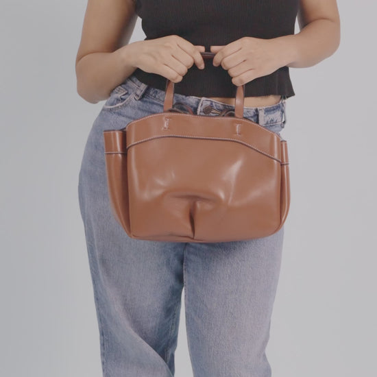 A large, relaxed slouchy tote bag in a rich brown/tan color. It features a soft, pliable material and long twin shoulder straps. The open design is perfect for maximizing storage.
